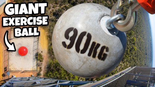 20kg Rubber Band Ball Vs. World’s LARGEST Exercise Ball From 45m!