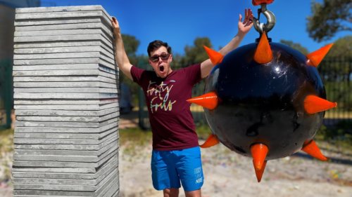 1000lbs Spiked Wrecking Ball Vs. Concrete Stack From 45m @ 13,000fps