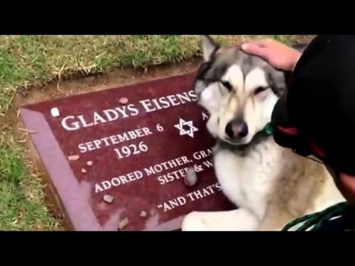 Dog cries at Grave…