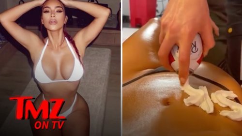 Kim Kardashian Gets ‘SKIMS’ Written On Oily Body With Whipped Cream | TMZ TV Celebrities · February 19, 2021